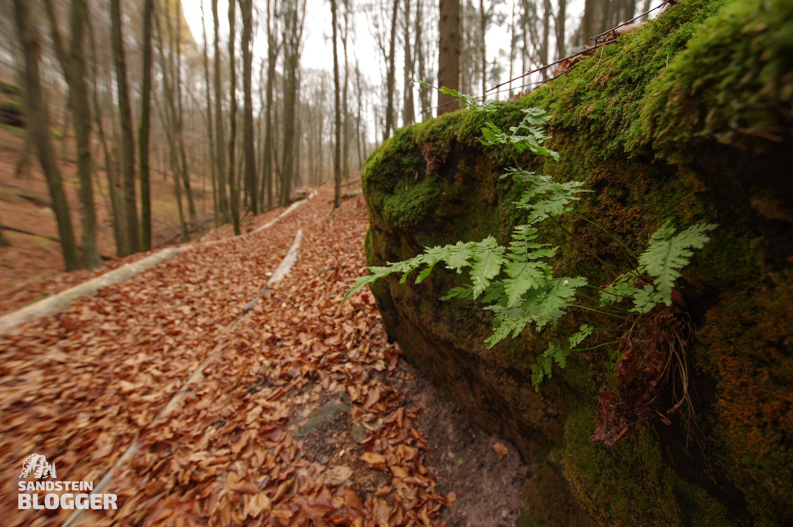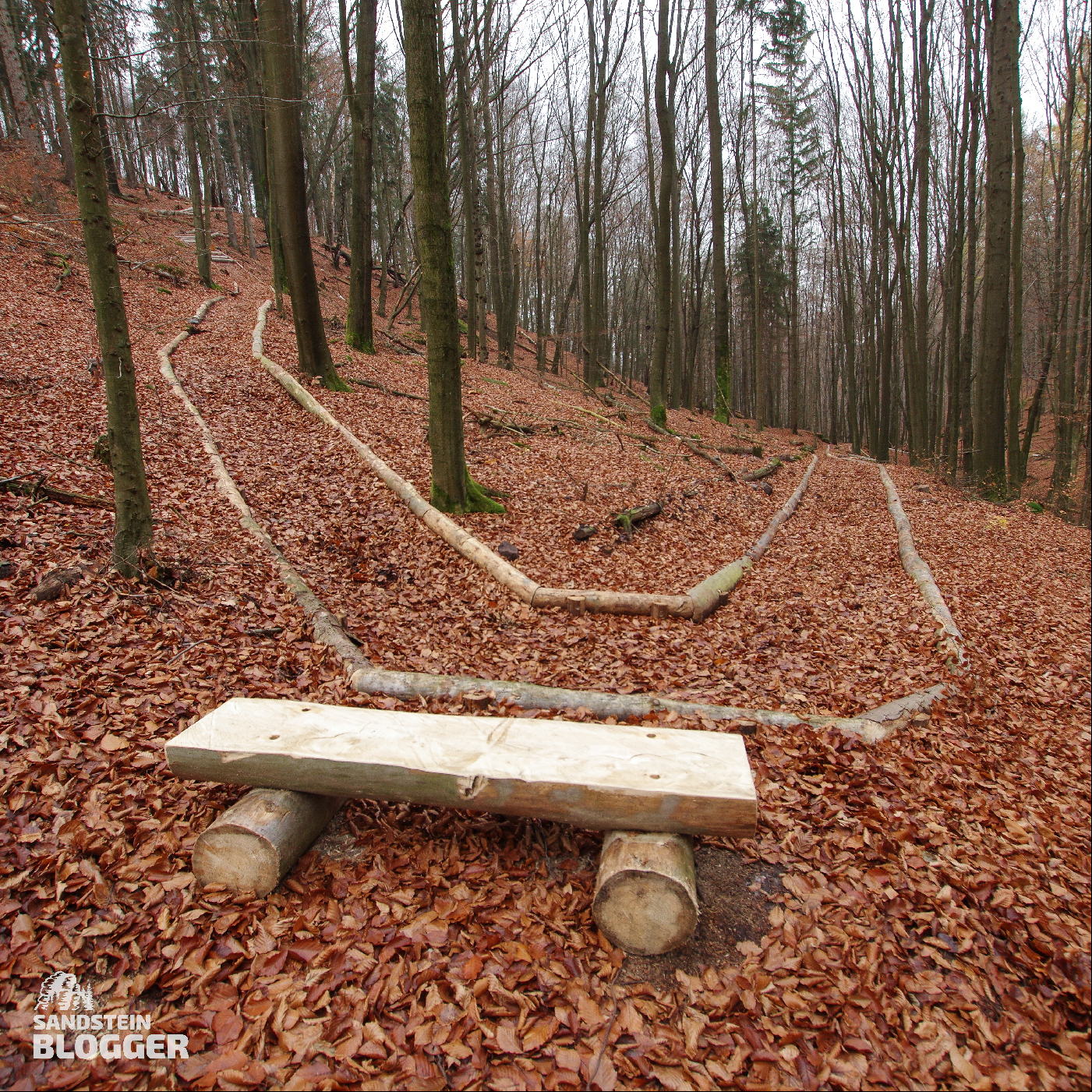 Noch eindrucksvoller ist das Panorama dann freilich von der neuen Aussichtsplattform Fénix auf böhmischer Seite – vis-à-vis vom Prebischtor mit den umliegenden Felswänden. Dazwischen ist man vor allem am Anfang recht lauschig in den winterbergtypischen Buchenwäldern unterwegs. Dass diese dem Blick in die Ferne nicht allzu oft Raum geben, tut der Sache keinen Abbruch, sondern ist in gewissem Sinn sogar von Vorteil. Denn dadurch lädt die Route zum Innehalten und Wachwerden für die vielen, unauffälligen Kleinigkeiten am Wegrand ein, die man beim Blick auf die großen Ziele sonst nur allzu schnell übersieht. Was man dabei erleben kann >>> Zum Beitrag aufs Bild klicken!